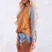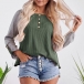 Fashion Contrast Color Long Sleeve Round Neck Loose T-shirt