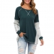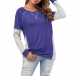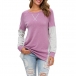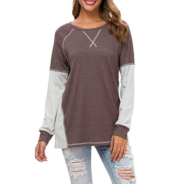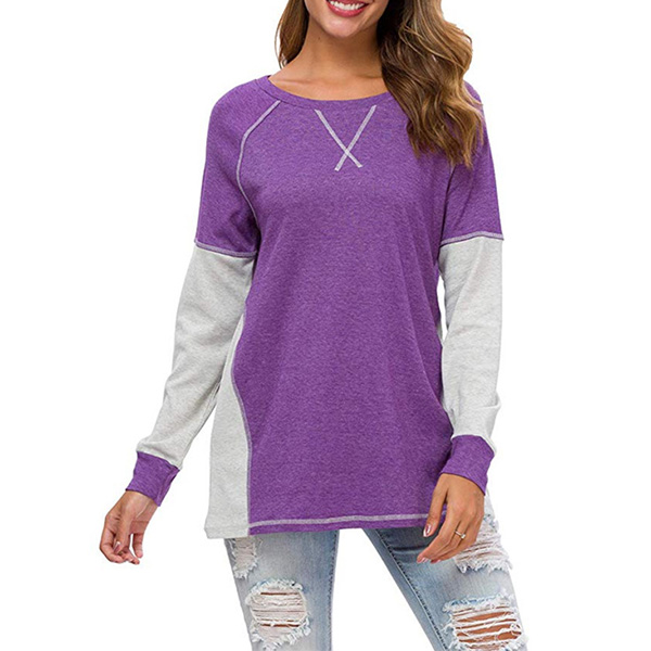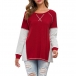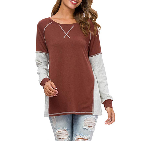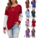 Fashion Contrast Color Long Sleeve Round Neck Loose T-shirt