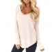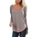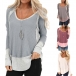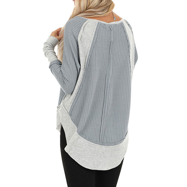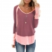 Fashion Contrast Color Long Sleeve Round Neck Loose T-shirt