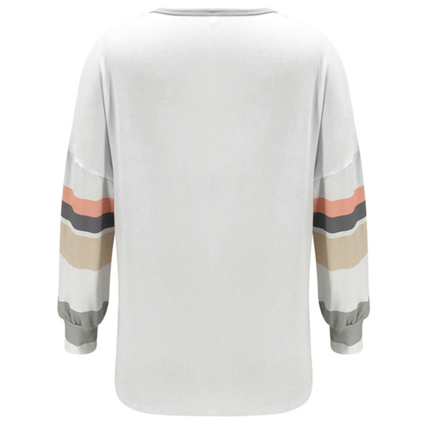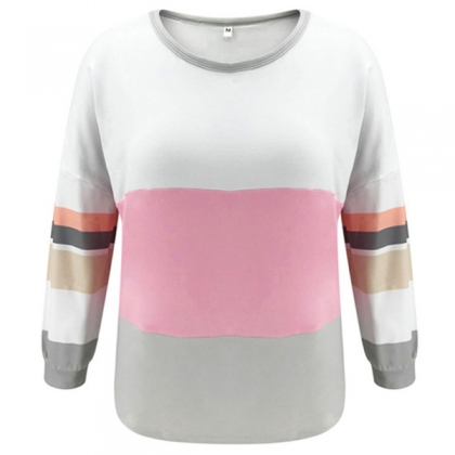 Fashion Contrast Color Long Sleeve Round Neck Loose T-shirt