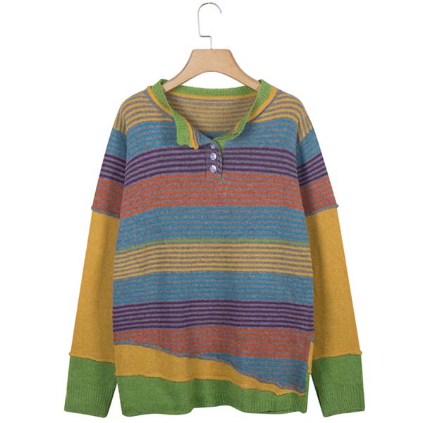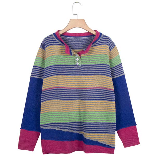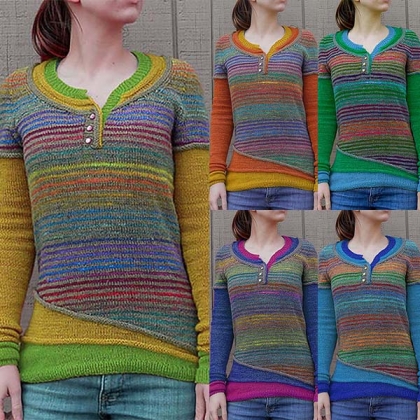 Give your wardrobe a seasonal update by adding this sweater. Contrast color striped element design makes this piece look more colorful and stylish. Finished with long sleeve and round neck design,this sweater can keep you warm while it maintains your style.