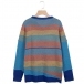 Fashion Contrast Color Long Sleeve Round Neck Striped Sweater