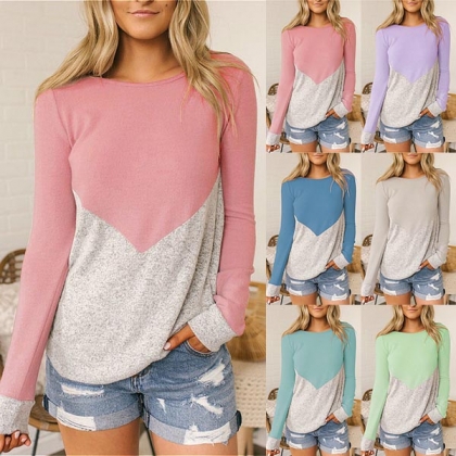 Fashion Contrast Color Long Sleeve Round Neck Sweatshirt