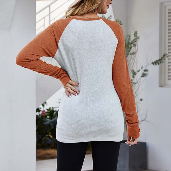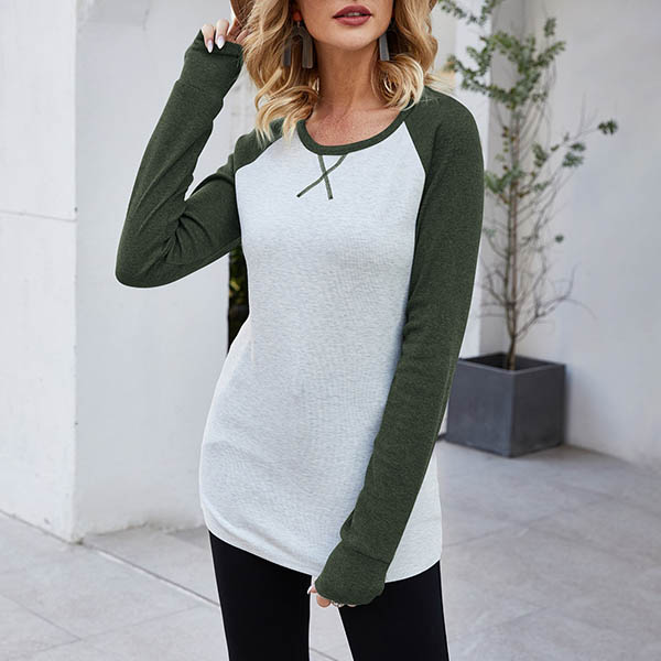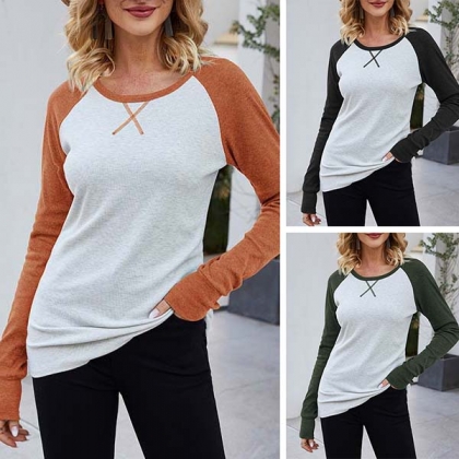 Fashion Contrast Color Long Sleeve Round Neck T-shirt
