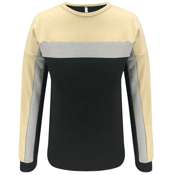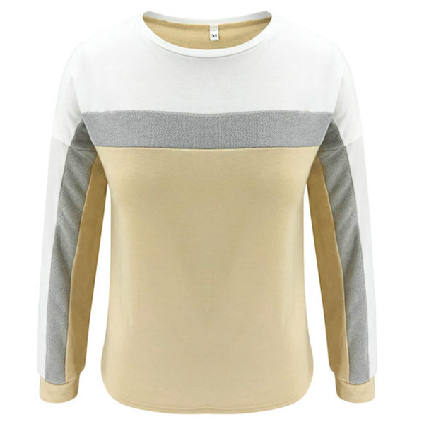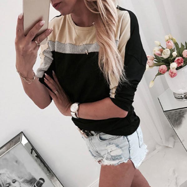 Fashion Contrast Color Long Sleeve Round Neck Top