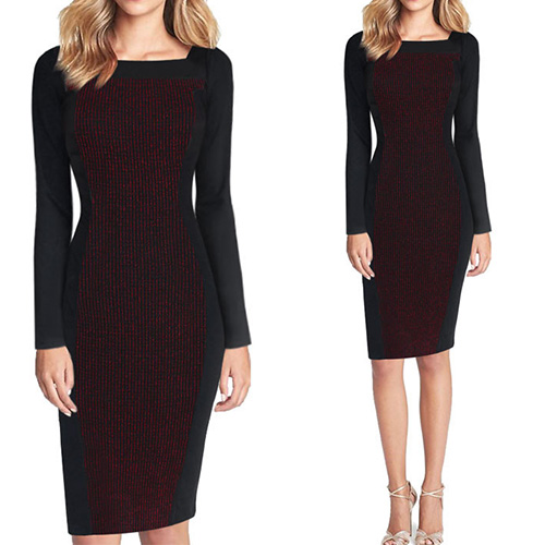 This dress features contrast color style,elegant and stylish. Outfitted with long sleeve,square collar