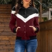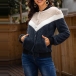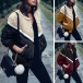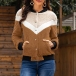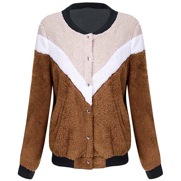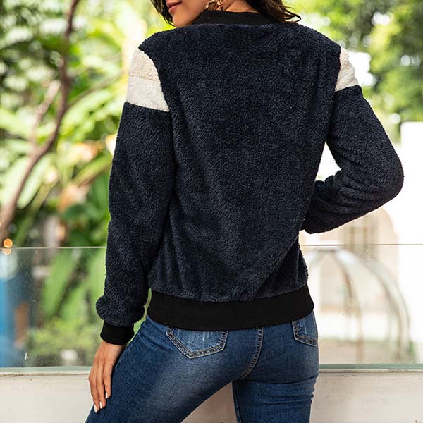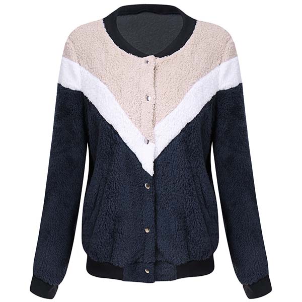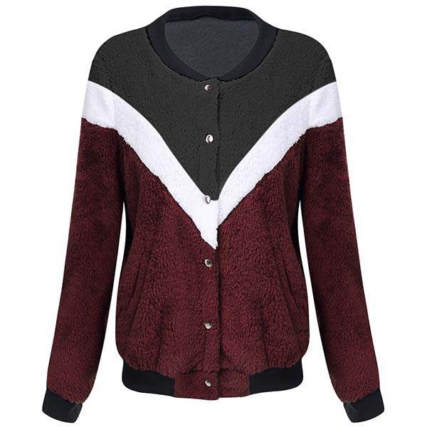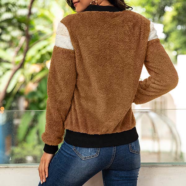 Fashion Contrast Color Long Sleeve Stand Collar Plush Coat