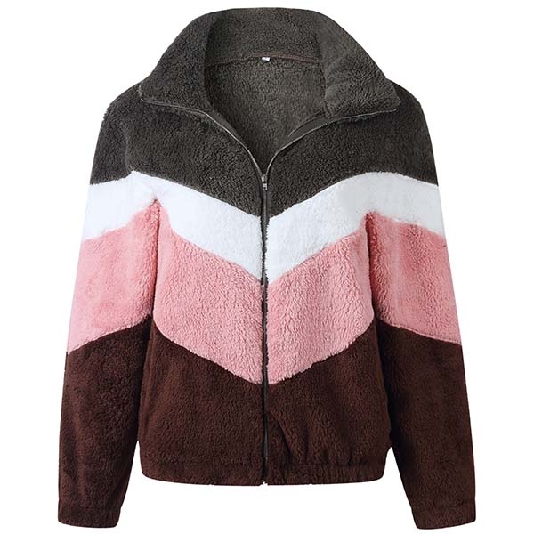 Embrace these cold days with this plush coat! Contrast color design will boost its charm,while the