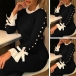 When you wanna update your daily style,you can have a try this two-piece set. Ruffle design at the collar and cuff part can add some sweet vibes,while the pears details will make it look more attractive. Perfect fit for you when the days get a little cold.