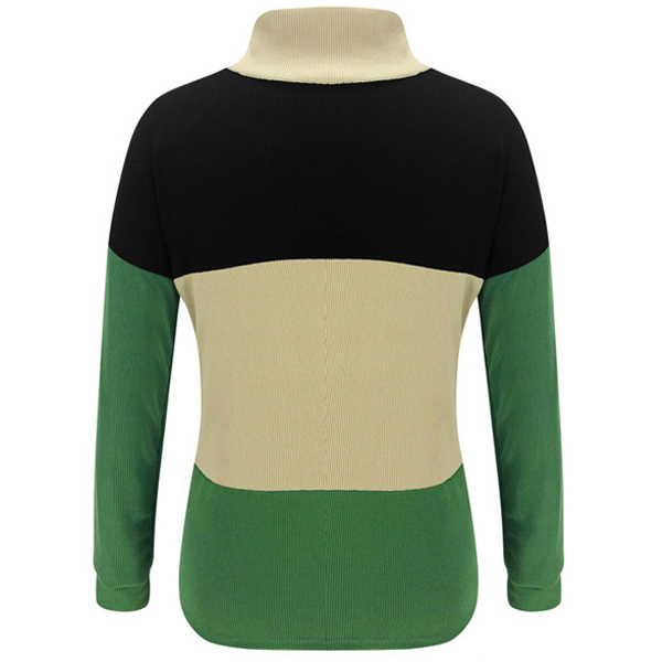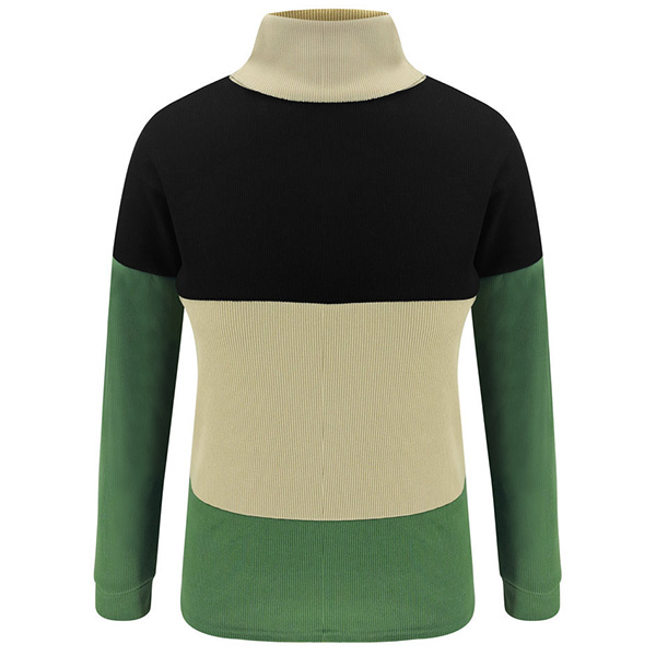 Fashion Contrast Color Long Sleeve Turtleneck Knit Top