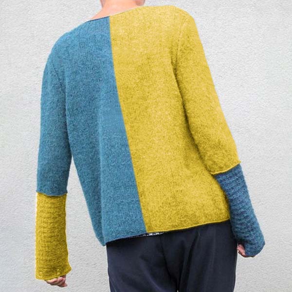 Fashion Contrast Color Long Sleeve V-neck Knit Top