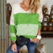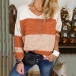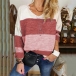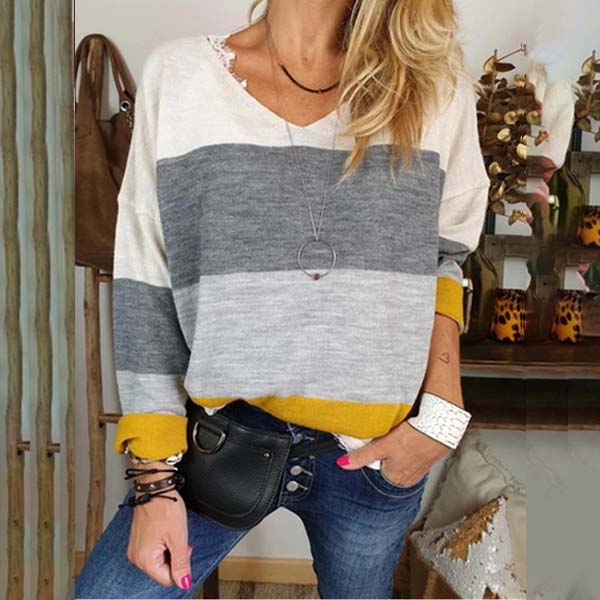 Fashion Contrast Color Long Sleeve V-neck T-shirt