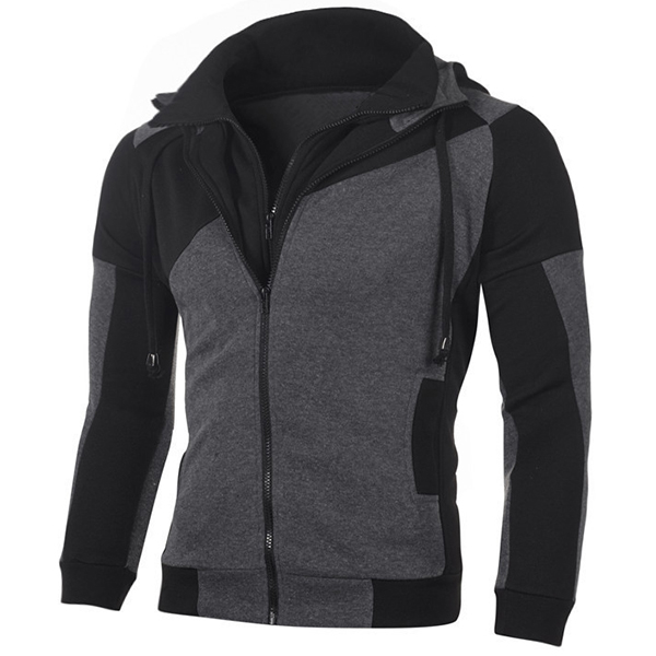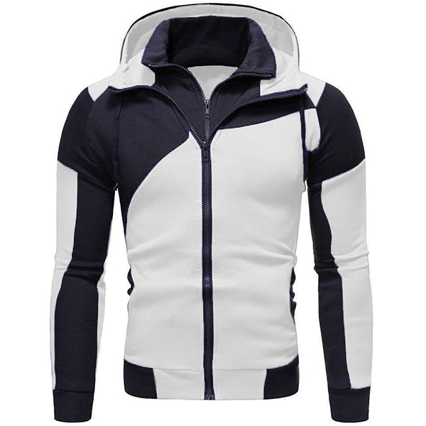 Kontrastfärgad långärmad huvtröja med dragkedja och Slim Fit för män