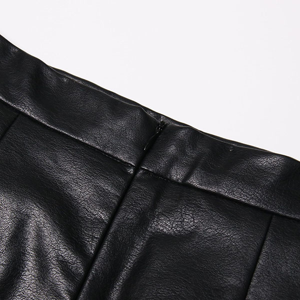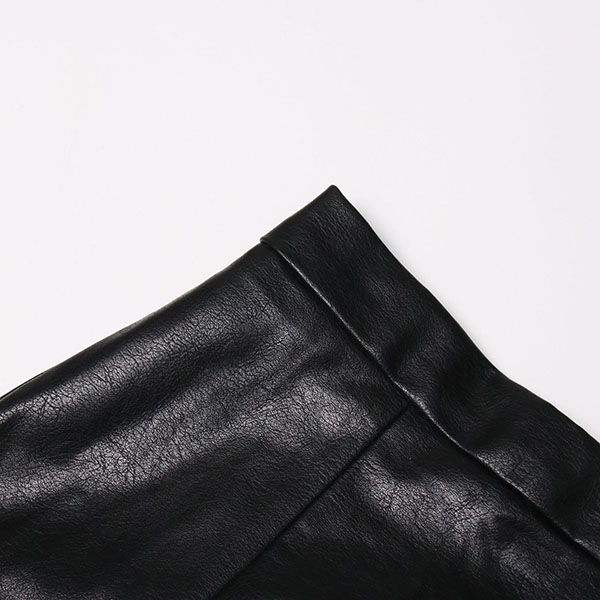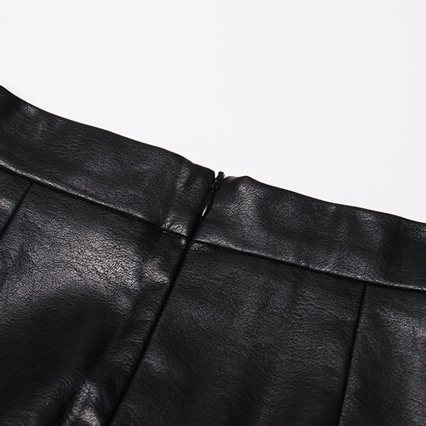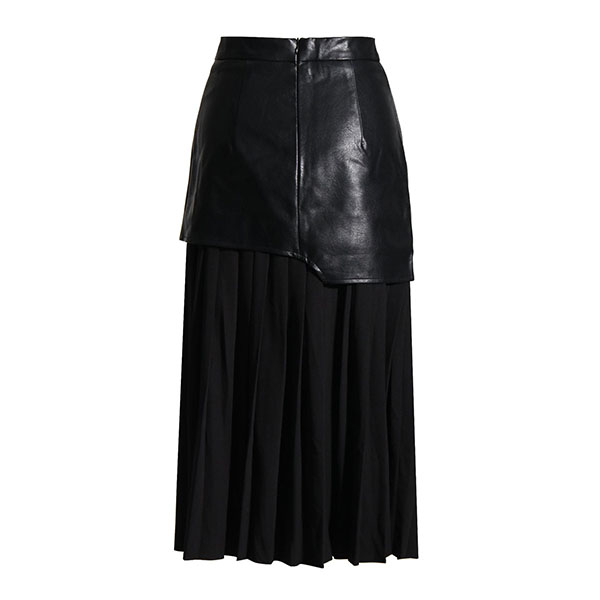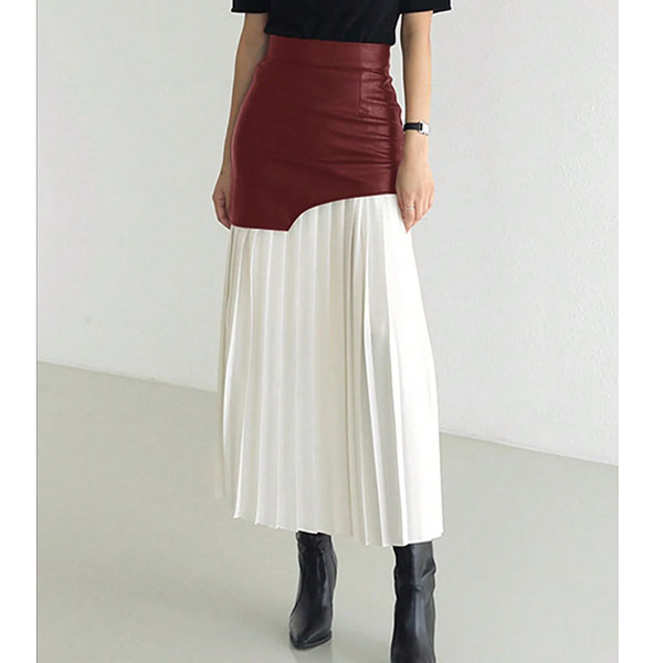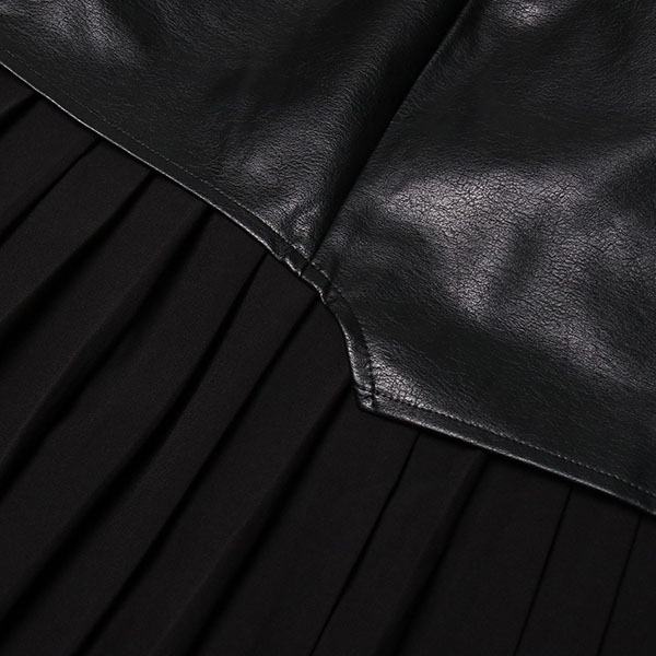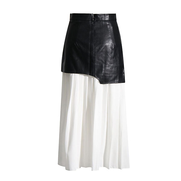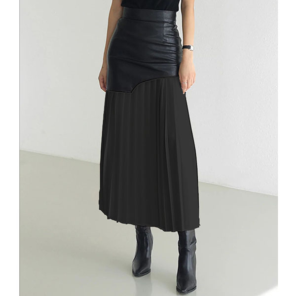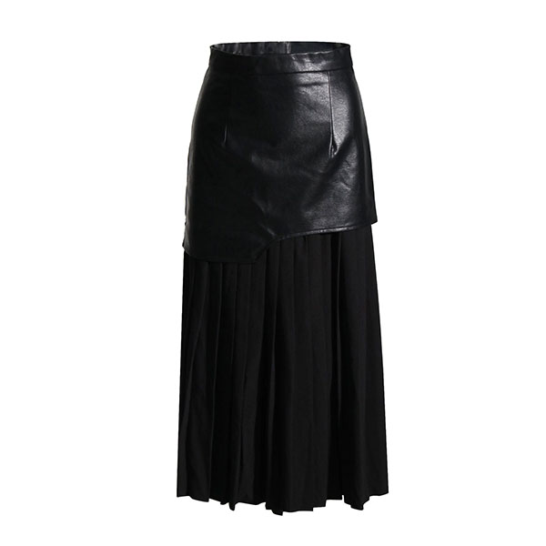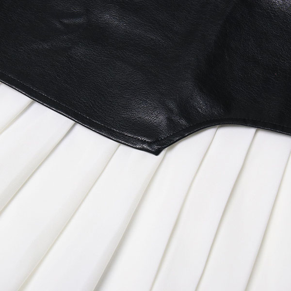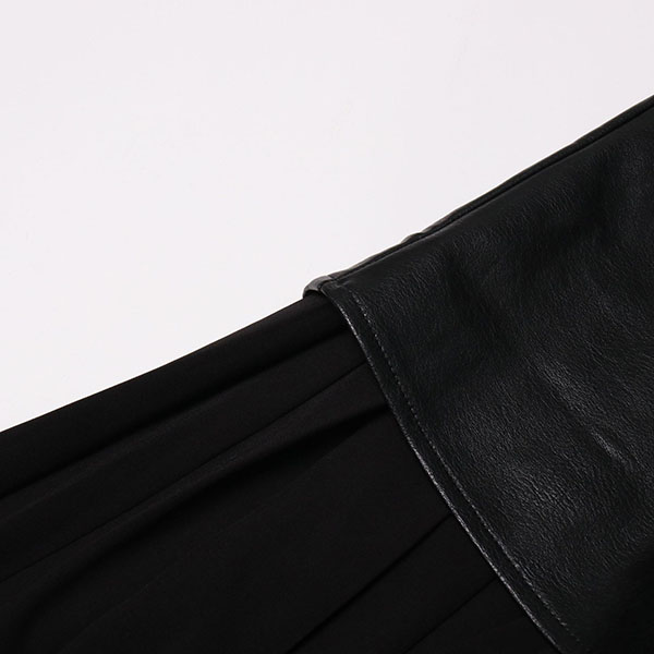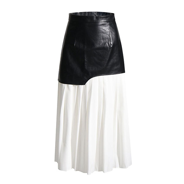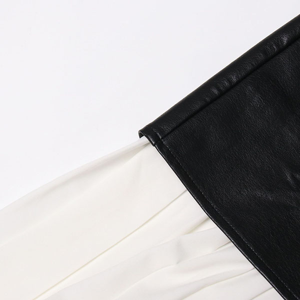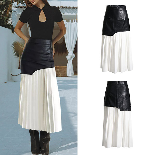 Den här kjolen har en unik design med kontrasterande färger och veckad skarvning för extra textur och rörelse. Tillverkad av högkvalitativt PU-läder för en elegant och chic finish.