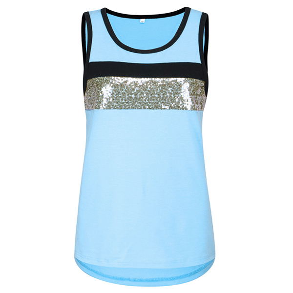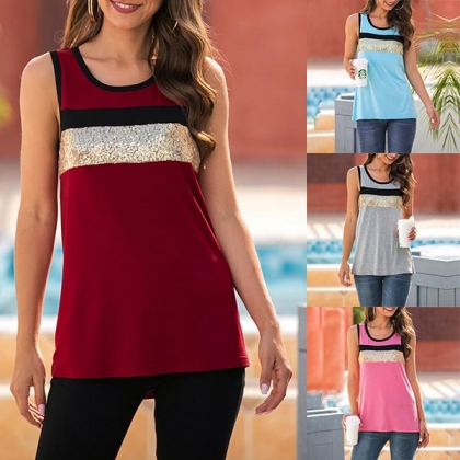 Fashion Contrast Color Round Neck Sequin Spliced Tank Top