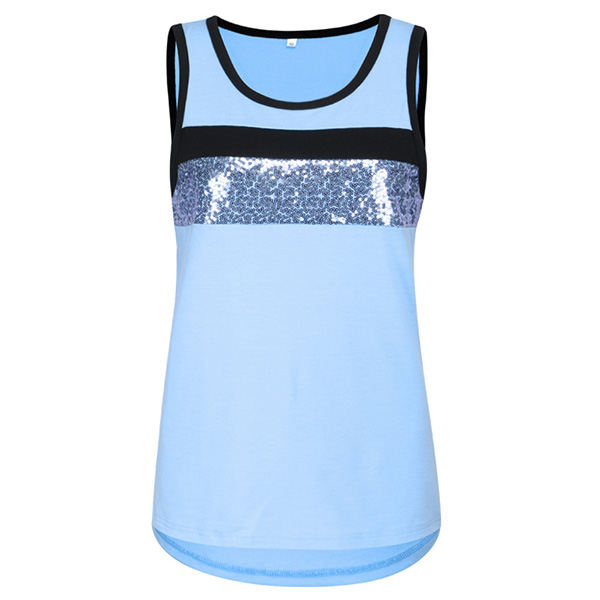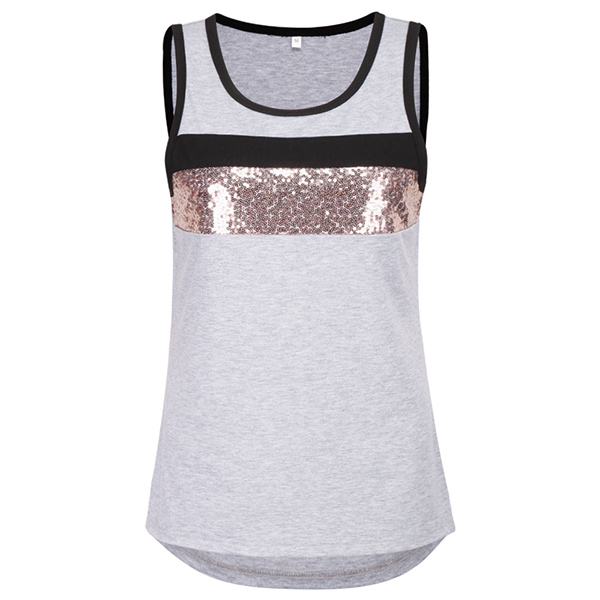For these hot summer days,a cozy and stylish tank top is an essential. So how about this piece? Contrast color style,the sequin spliced details will make it look more attractive. Try to match with a shorts to enjoy these sun-soaked summer days.
