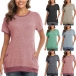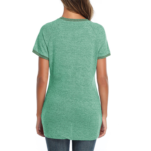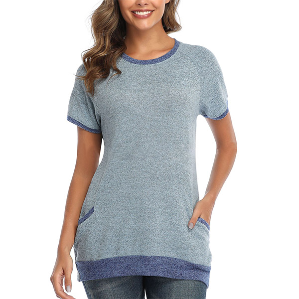 Fashion Contrast Color Short Sleeve Round Neck Loose T-shirt