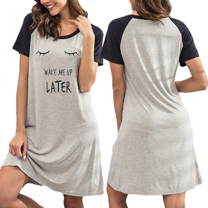 Fashion Contrast Color Short Sleeve Round Neck Printed Nightwear Dress