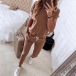 For these sports lovers,this cozy yet stylish sports suit can easily strike their mind. Contrast color design makes it look not so simple and dull. Including a short sleeve round neck top and a pants,its soft and breathable fabric can ensure you a comfortable day. Enjoy your sports time and casual weekends with this sports suit.