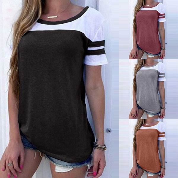 Fashion Contrast Color Short Sleeve Round Neck T-shirt