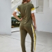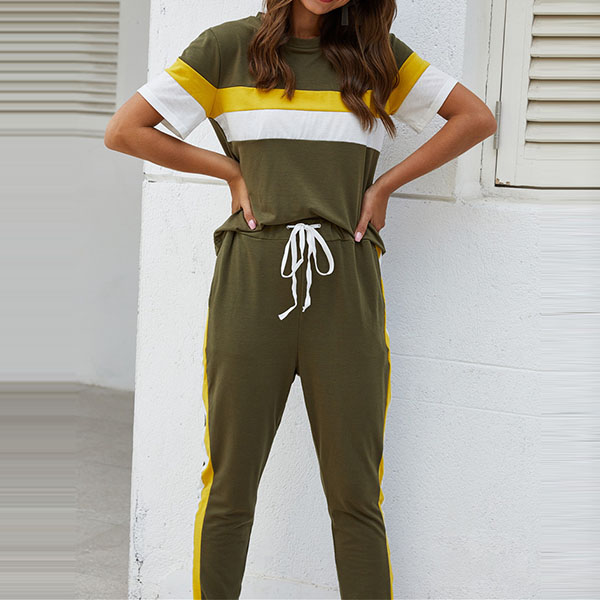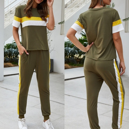 Fashion Contrast Color Short Sleeve T-shirt + Pants Two-piece Set