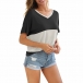 Fashion Contrast Color Short Sleeve V-neck Loose T-shirt