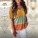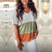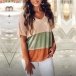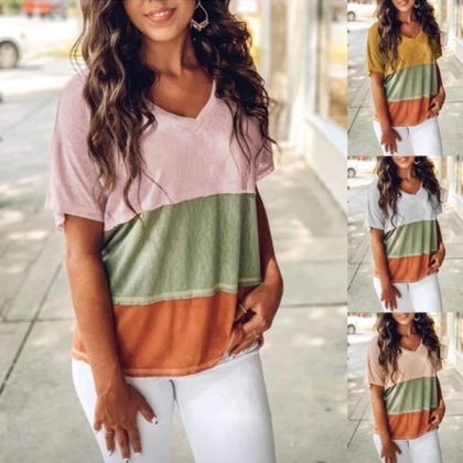 Fashion Contrast Color Short Sleeve V-neck Loose T-shirt