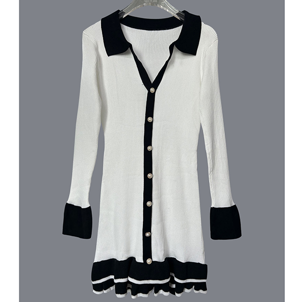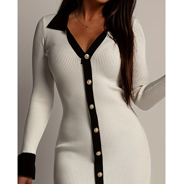 Upptäck säsongens trendigaste ribbstickade klänning i premiumkvalitet – ett måste-ha för din garderob. Klänningen kombinerar strukturerad design med feminina detaljer på ett unikt sätt: den eleganta ståkragen ger en sofistikerad känsla, kontrastfärgade sömmar och knappslå framtill skapar iögonfallande detaljer, och volangerna i fållen tillför rörelse och en flirtig touch. Med sitt mjuka, följsamma stretchtyg garanterar den en bekväm passform och passar perfekt för alla tillfällen. Bär den med sneakers eller boots för en avslappnad vardagslook, eller matcha med klackar för en elegant feststil. Begränsad upplaga – säkra din nya garderobsfavorit innan den säljer slut!