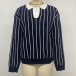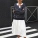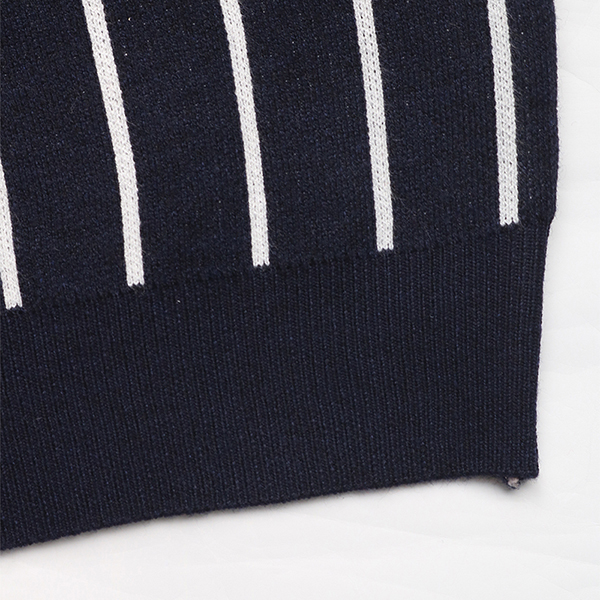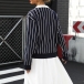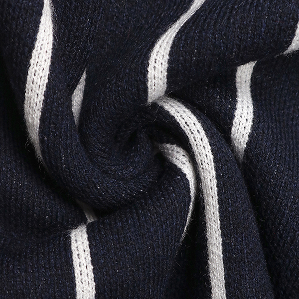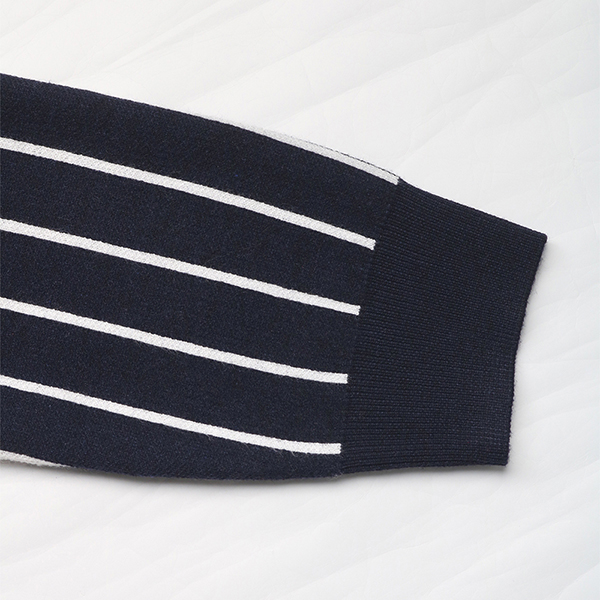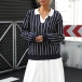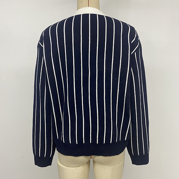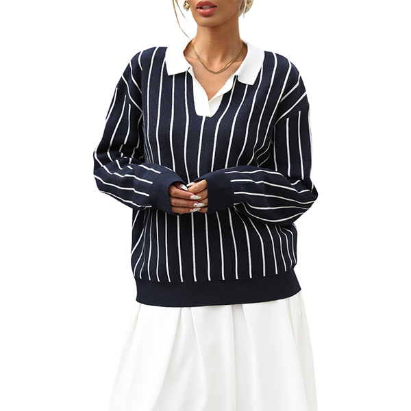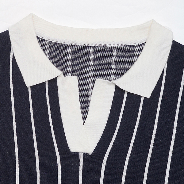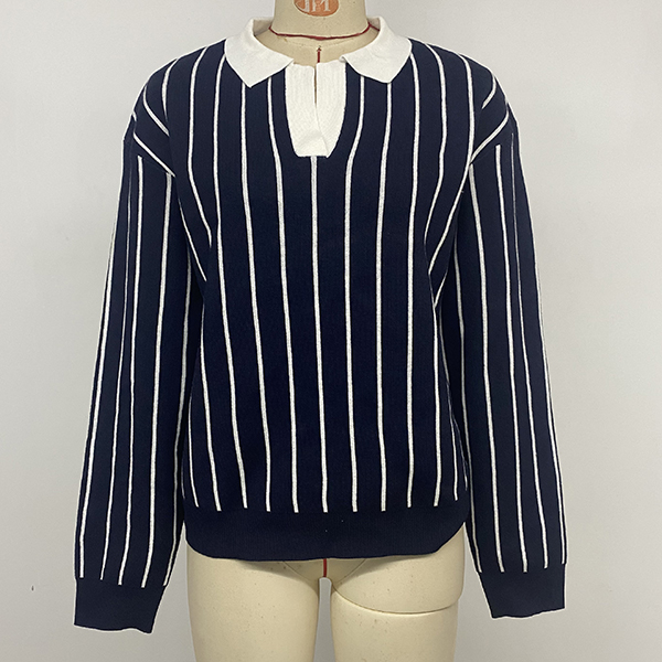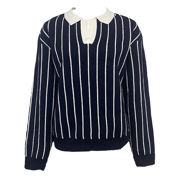 Långärmad tröja med stående kontrastkrage, V-ringning och vertikala ränder
