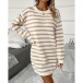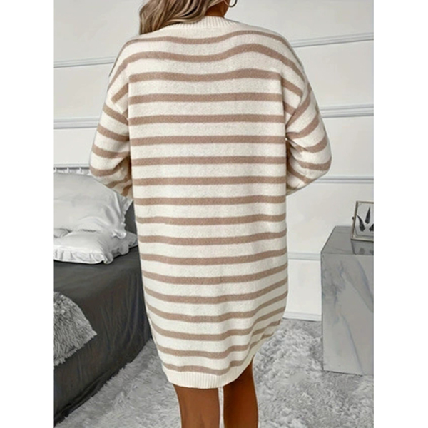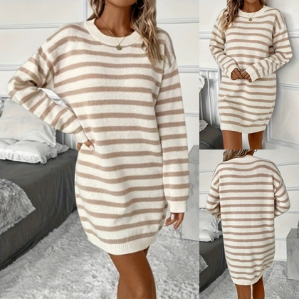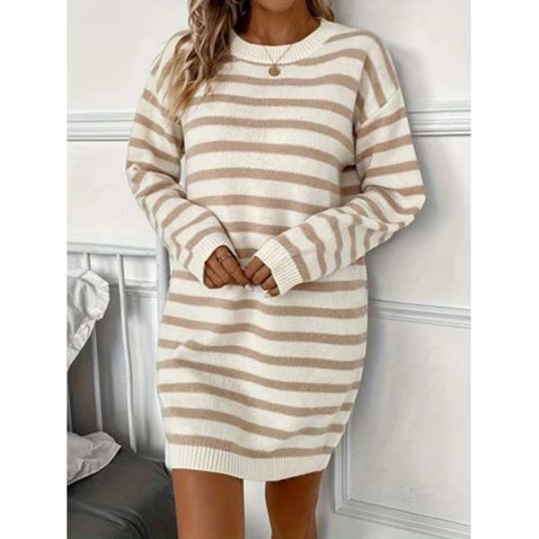 Damtröjklänning – trendig randig stickad modell med kontrasterande färger och rund hals, långärmad