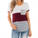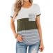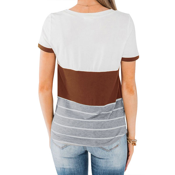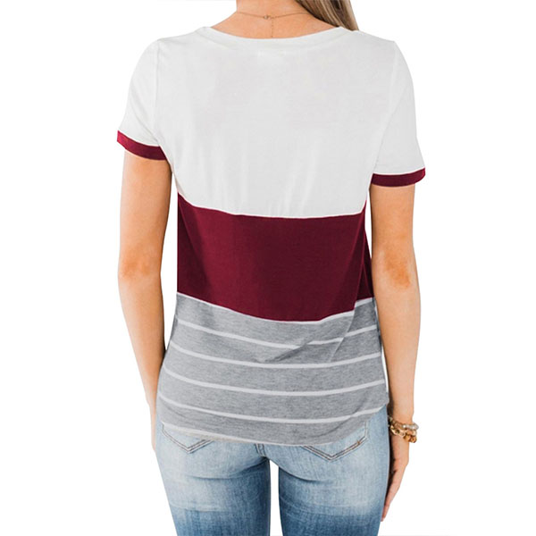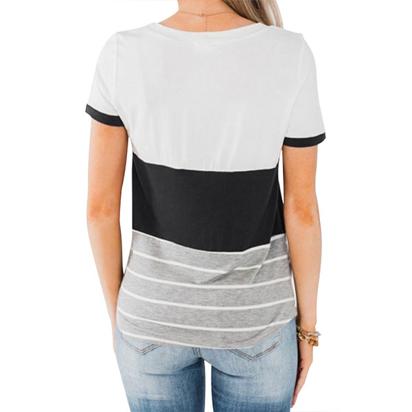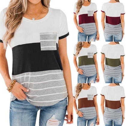 Fashion Contrast Color Striped Spliced Short Sleeve Round Neck T-shirt