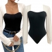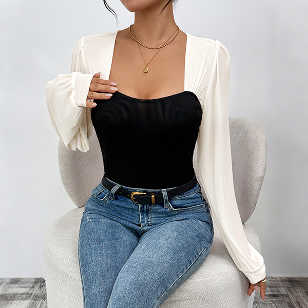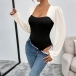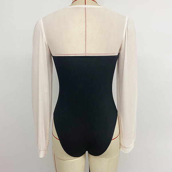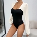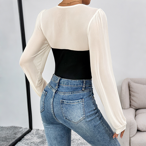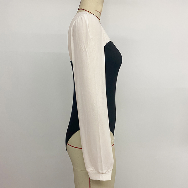 Trendig långärmad body i kontrastfärger med hjärtformad ringning