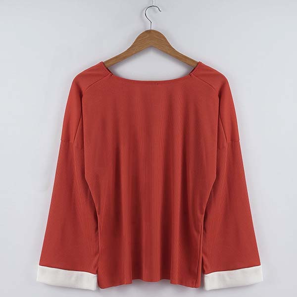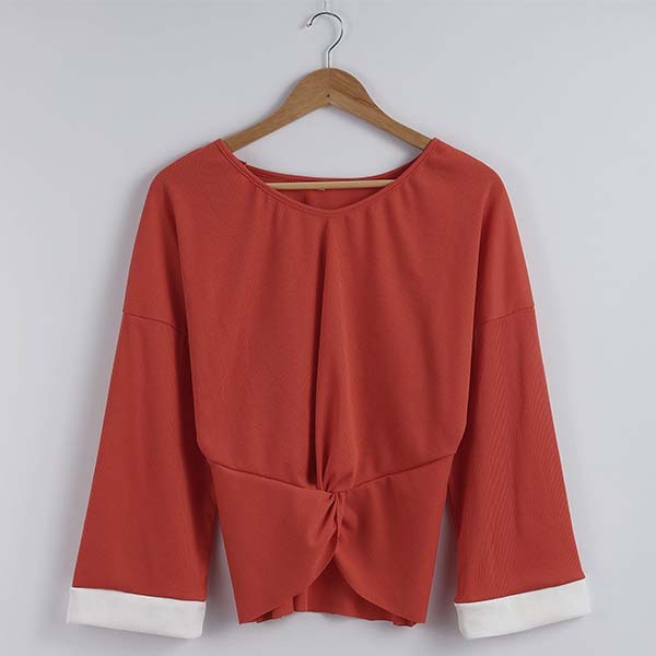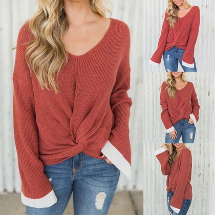 Hey,girls,you can have a try this wonderful top to boost your fashion level. Contrast color style,the v-neck and trumpet sleeve design can exudes your feminine appeal,while the twisted hem design will make this piece look more distinctive and attractive. This style is your dish? Then introduce it to your team!
