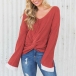 Fashion Contrast Color Trumpet Sleeve V-neck Twisted Hem Top