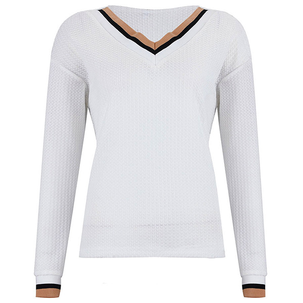 This long sleeve knit top is your wardrobe staple in these spring and autumn days. Finished with long sleeve and v-neck design,simple yet stylish. And the contrast color design will boost its entire charm. Perfect for matching with different style bottoms like shorts,skirts,jeans and so on.