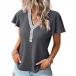 I like this casual shirt! The contrast color V-neck and ruffled short sleeves add a touch of elegance and sophistication, wanna have a try?