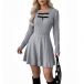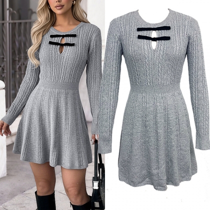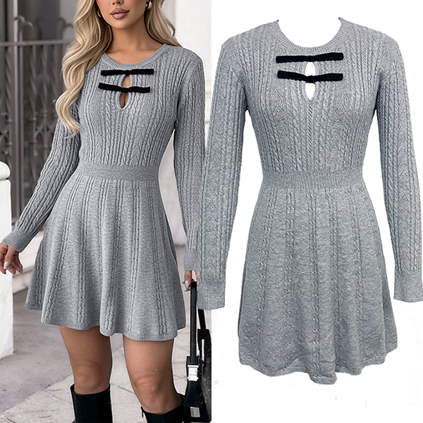 Miniklänning med rund hals, långa ärmar, rosett och texturerat material med utskuren detalj framtill