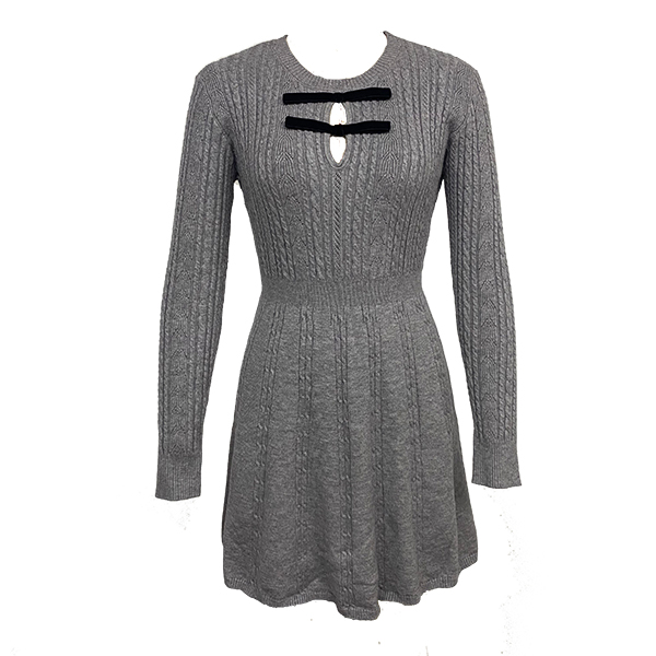 Denna charmiga klänning har en klassisk rund halsringning, feminina rosettdetaljer och en slående utskärning fram som ger en modern, lekfull och sofistikerad look. Kombinera med ankelboots och fina accessoarer för en modern, feminin stil.