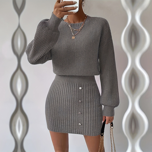 Det här är en mångsidig och chic tröja som kombinerar komfort med mode. Tillverkad av stickat tyg, erbjuder den en mjuk och mysig känsla, idealisk för att hålla sig bekväm och snygg hela dagen. Kombinera den med strumpbyxor och stövlar för en avslappnad och chic vardagsoutfit.