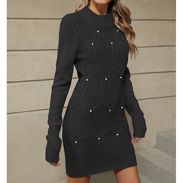 Skapa en tidlös och lyxig höst- och vinterstil med vår exklusiva kabelstickade tröjklänning – tillverkad i extra mjuk akrylblandning som värmer utan att tynga. Det klassiska kabelmönstret får en glamourös twist tack vare handsydda pärldetaljer som ger en subtil lyster och skiljer den från massproducerade stickade plagg. Den följdriktiga siluetten accentueras av ribbstickad midja och mjukt fallande ärmar, medan den knälånga längden gör den perfekt att matcha med knähöga stövlar och eleganta smycken. Oavsett om du bär den till kontoret, en gångmiddag eller vinterfesten – den här tröjklänningen lyfter din look med omedelbar wow-effekt och blir snabbt säsongens mest älskade basplagg.