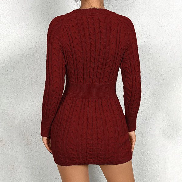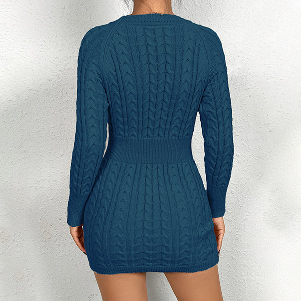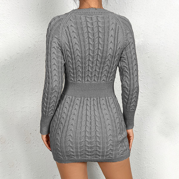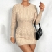 Håll dig mysig och snygg i denna tröjaklänning. Kabelmönstret lägger till en touch av textur och visuellt intresse till klänningen, medan bodycon-silhuetten omsluter dina kurvor på alla rätt ställen och skapar en smickrande och stilren look. Perfekt för en avslappnad dag ute, brunch med vänner eller en lugn kväll hemma. Den här tröjan är mångsidig och chic. Kombinera den med strumpbyxor och stövlar för en mysig och trendig outfit!