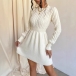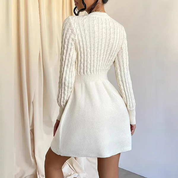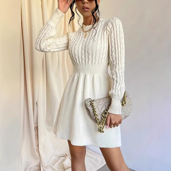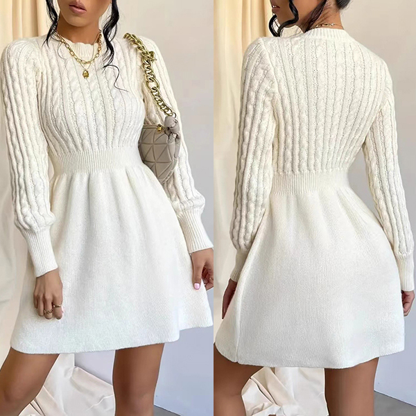 Upplev lyxig komfort och tidlös elegans med vår exklusiva kabelstickade tröjklänning. Den klassiskt rundade halsringningen och den smickrande högmidjan framhäver din silhuett på ett naturligt sätt, medan den täta kabelstickningen ger både värme och textur som skiljer sig från vanliga, tunna stickade klänningar. Tillverkad i extra mjukt, högkvalitativt garn som behåller formen och mjukheten tvätt efter tvätt. Kombinera med knähöga stövlar och en matchande halsduk för en osvikligt chic look som fungerar lika bra på kontoret som under helgens middagsbjudningar. Med detaljer som finmaskig stickning, perfekt fall och en tidlös design blir den här tröjklänningen snabbt nyckelplagget i din garderob.
