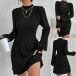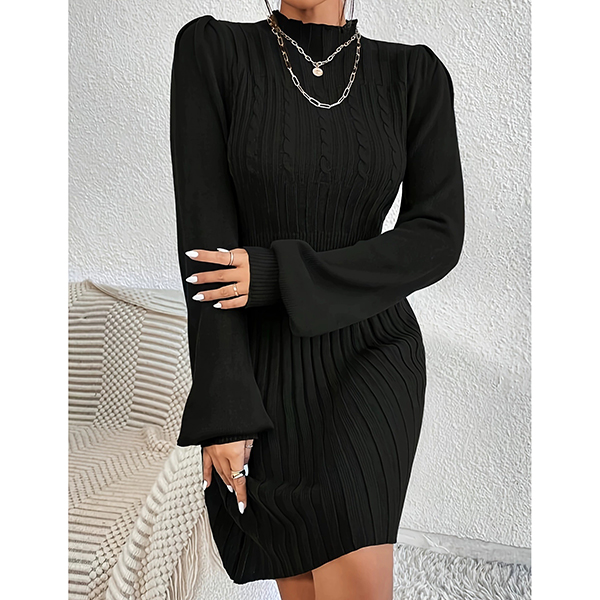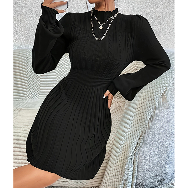 Den här klänningen har en klassisk rund halsringning, en smickrande hög midja och en texturerad, ribbad konstruktion som ger en modern, bekväm och sofistikerad look. Kombinera med ankelboots och lager‑på‑lager‑accessoarer för en modern, avslappnad look.