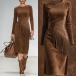 Denna slående klänning har en klassisk rund halsringning med dynamiska tofsdetaljer och en figursmickrande, åtsittande siluett för en modern, sofistikerad glamour. Kombinera med klackar och iögonfallande smycken för en sofistikerad och glamorös look.