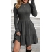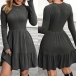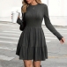 Ribbad långärmad klänning med rund halsringning och lager-på-lager-look