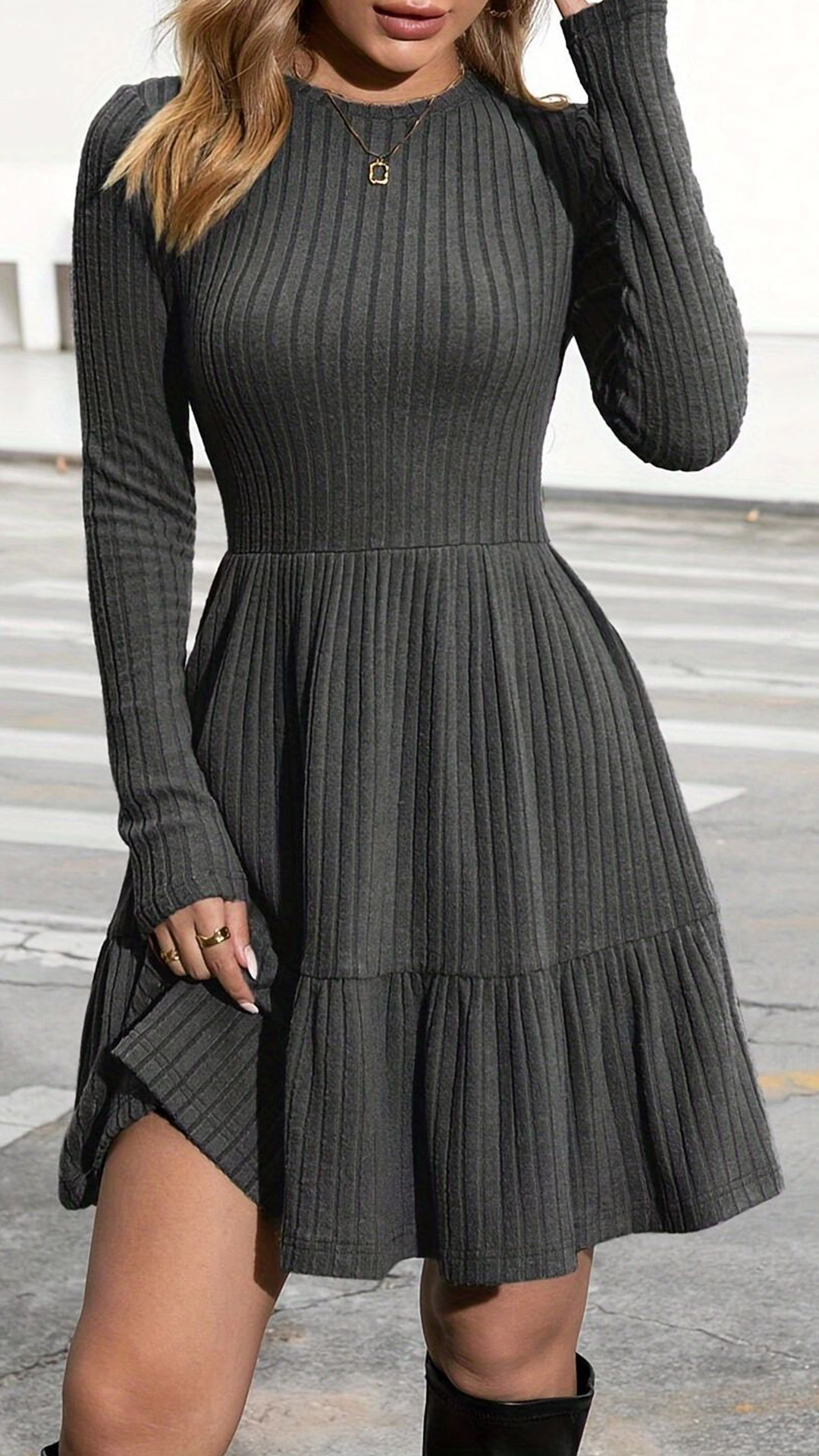 Denna ribbade flerskiktsklänning förenar tidlös elegans med trendig edge. Rundad halsringning skapar en klassisk silhuett, medan de unika ribbade lagren ger livfull textur och djup – en tydlig skillnad mot standardmodeller. Det mjuka, stretchiga tyget formar sig smickrande efter kroppen och ger full rörelsefrihet, perfekt för både vardagsbruk och festliga tillfällen. Lyxig kvalitet och genomtänkt design säkerställer att klänningen behåller formen tvätt efter tvätt. Kombinera med stilettklackar för en sofistikerad kvällslook eller med stövlar och skinnjacka för en avslappnad, rockig vibe. Med sin innovativa skiktdetalj, bekväma passform och mångsidiga stylingmöjligheter blir den snabbt en given favorit i garderoben.