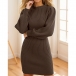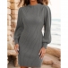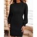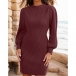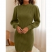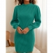 Ribbad damklänning, långärmad med puffärmar och rund halsringning