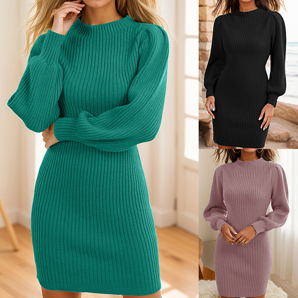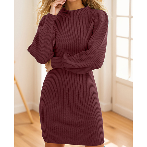 Förhöj din stil med denna ribbade klänning. Den eleganta klänningen har en klassisk rund halsringning och lekfulla puffärmar som ger en touch av romantik. Det ribbade tyget följer din siluett samtidigt som det garanterar komfort och flexibilitet. Ett måste i din garderob!