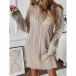 Kabelstickad tröja med rund halsringning och sidoknäppningar