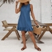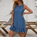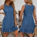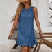 Ärmlös jeansklänning med rund halsringning, knäppning baktill och volangkant nertill